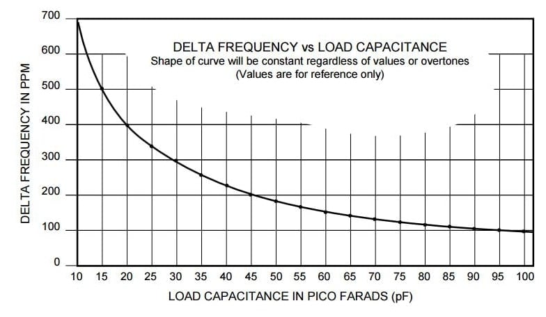 So what went wrong? Is the problem too little or too much load capacitance? Looking at the relationship between series frequency Fs and load capacitance: