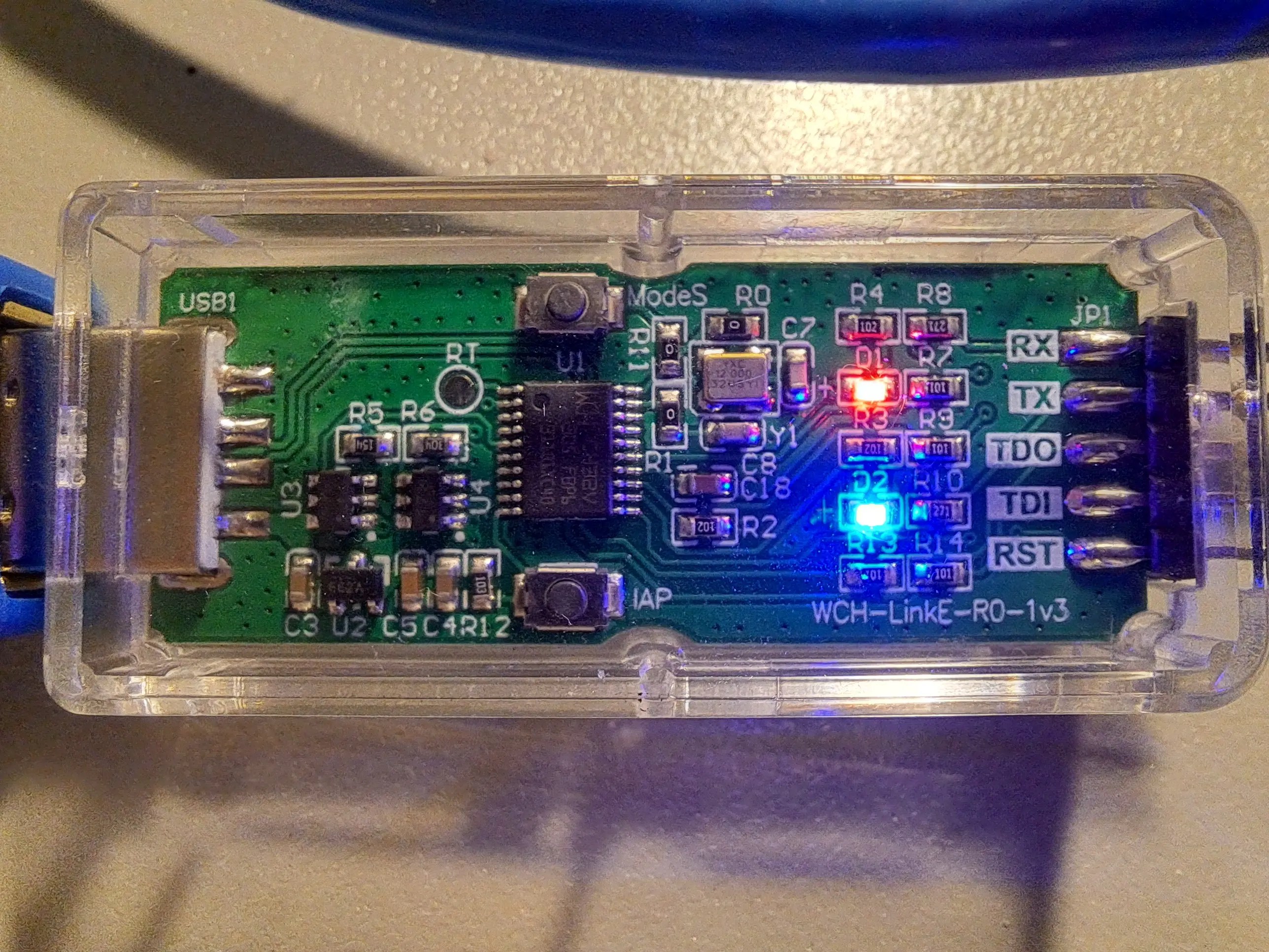 - Hold down the ModeS button while you plug the programmer into your USB port (Case can be a bit tricky to open though)